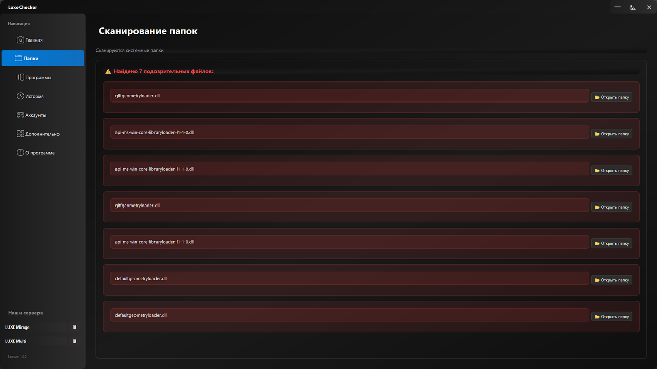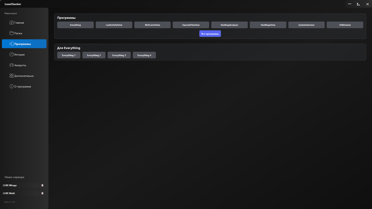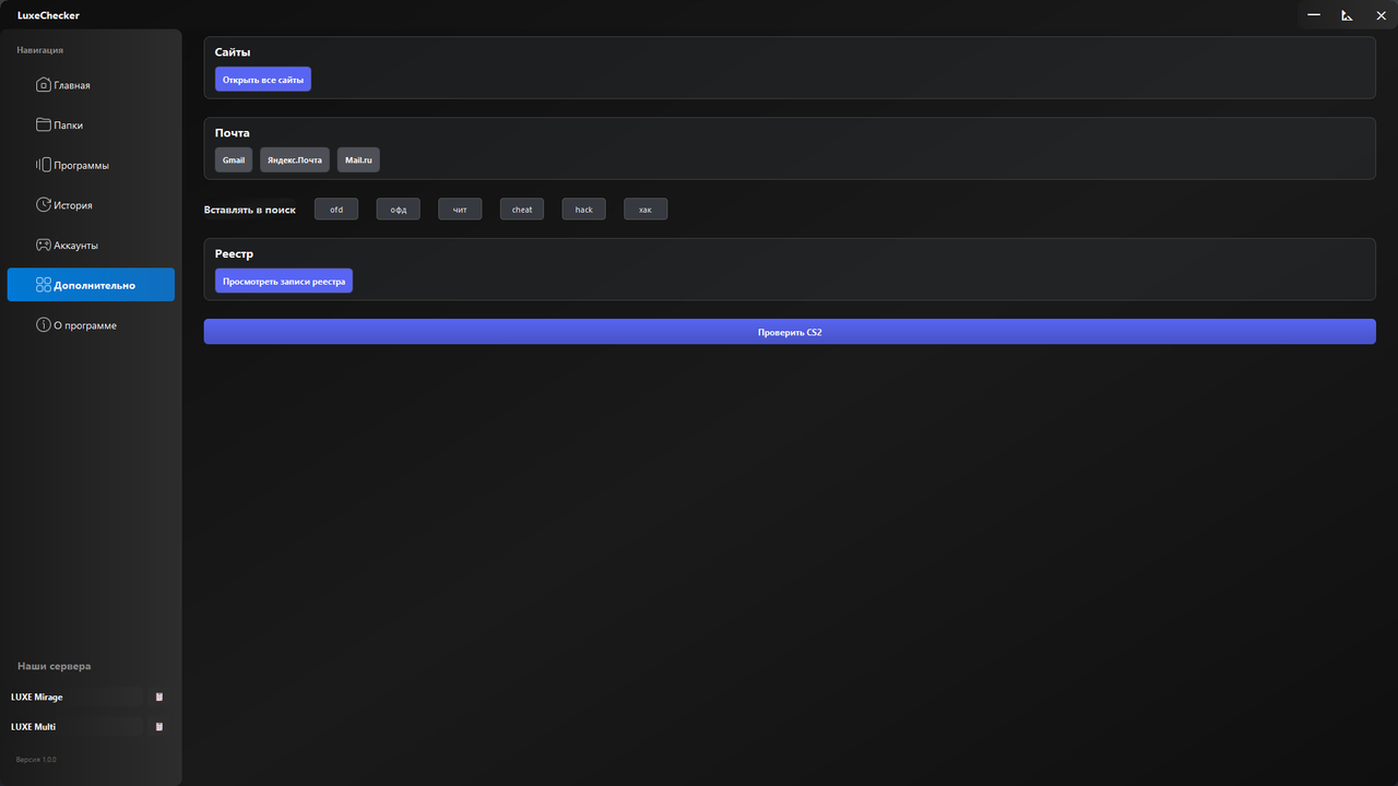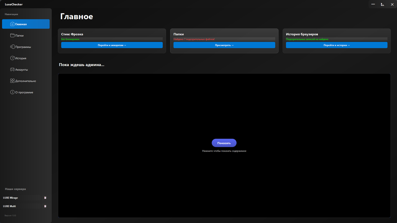 — Программа предназначена для обеспечения удобства при проверке Администратором Игрока на наличие стороннего ПО.